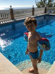 Azért a hatodik évem elég jól zárult, pont a szülinapomon elutaztunk Spanyolországba. Meglátogattuk a keresztszüleimet Malagán. Anyáék azt mondták, ott jó meleg lesz, de nem volt valami szép idő, medencézni alig tudtunk. Ha jól sejtem, ezért is lehet olyan furcsa neve a helynek. Régebben gondolom Melegének hívták, de mivel a fogyasztók megtévesztésére nagyon utazik a GVH, átcseréltek pár betüt. Na mindegy, rengeteg szuper programunk volt, játszótérről játszótérre mentünk és csudajókat játszottunk Ádival. Utána meg egy hetet Tenerifére mentünk. Ez a Kanáli szigeteken van. De lehetett késsel és villával is enni, nem csak kanállal. Finomakat is ettünk. Imádtam, végre hármasban egy egész hétig! Voltunk csúzdaparkban, láttunk delfinsót (sic.), fürödtem az óceánban, bejártunk egy hatalmas állatkertet, medencéztünk sokat és nagyokat nevettünk! Megérte hatévesnek lenni!