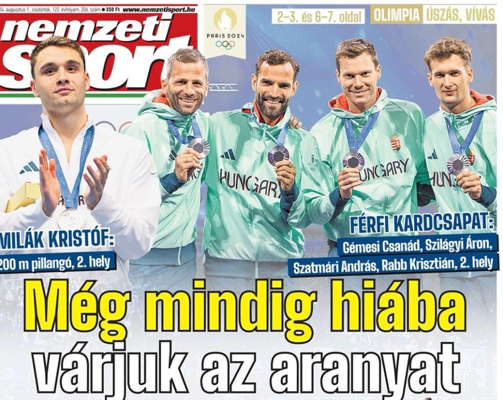 Az olimpia ötödik versenynapját követően a Nemzeti Sport az alábbi címlappal jelent meg: